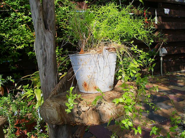 無機質なバケツも、風雪に耐えてちょっと疲れた身体を休めるのにピッタリ。。。