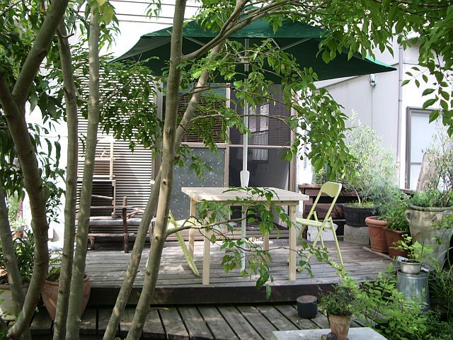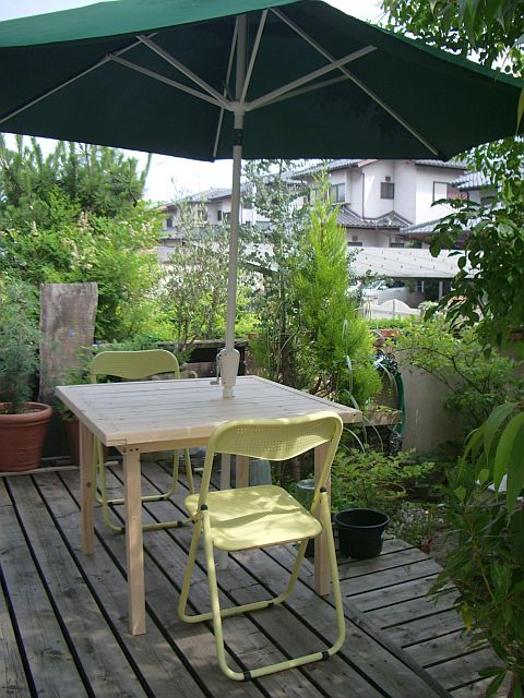 ”現品限り・超特価”のうたい文句に釣られガーデンパラソルを購入したものの、テーブルまでは手が出せなかった。。。