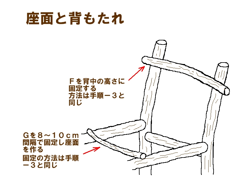 (4)で出来た骨組みにFで座面を、Gで背もたれを作る