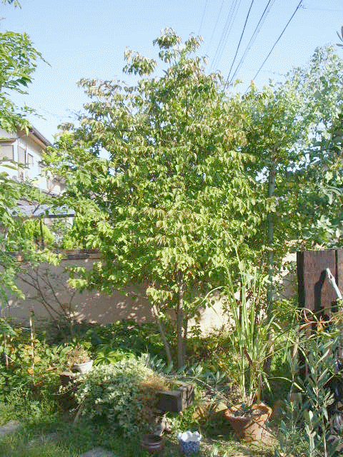 庭にはどうしても紅葉する木が欲しくて植えました。 春に咲く花はとても奇妙で、また実が赤くなるとナウシカに出てくる”オーム”のよう(色違いですが)です。 でもとても懐かしい味!